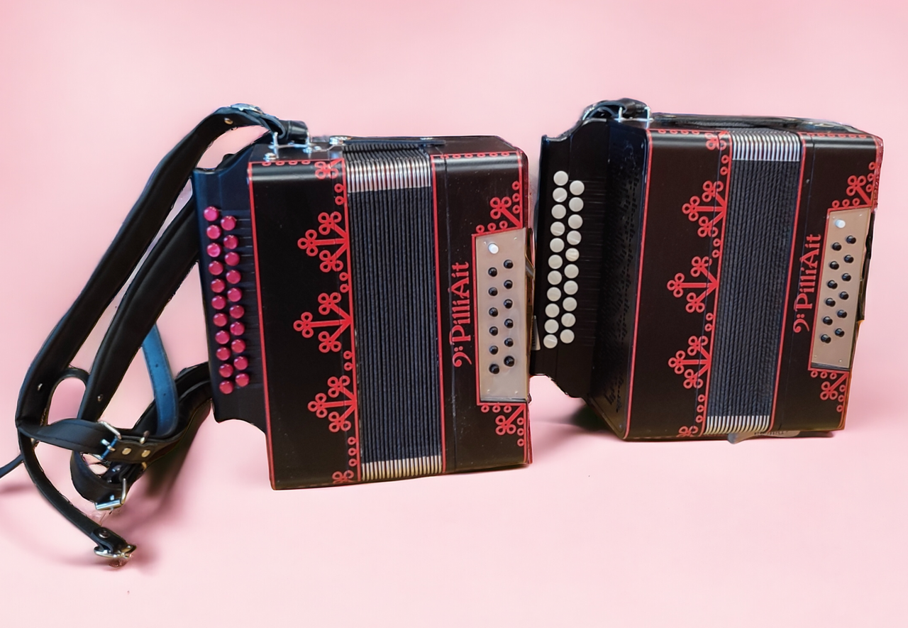 Pillil on 21 viisinuppu ja 12 bassi poolel samas hääles kui nn G karmoška (G/Em).